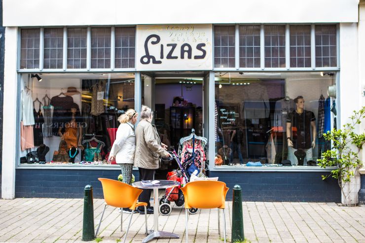 Als je aan komt fietsen zie je al direct dat het paarse bankje voor de deur uitnodigend is. Al die bloemen en de prachtige klimop tegen de gevel nodigen je uit om binnen een kijkje te nemen. Perfect winkeltje om in rond te snuffelen. Het lijkt net alsof je door je eigen kledingkast heen loopt en zal denken wat trek ik nu eens aan. Knus sfeertje ook!